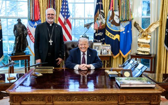Cardinal Kurt Koch, left, president of the Pontifical Council for Promoting Christian Unity, is seen with Fr. Mark Morozowich, acting provost at The Catholic University of America in Washington, May 30. (CNS/Tyler Orsburn)